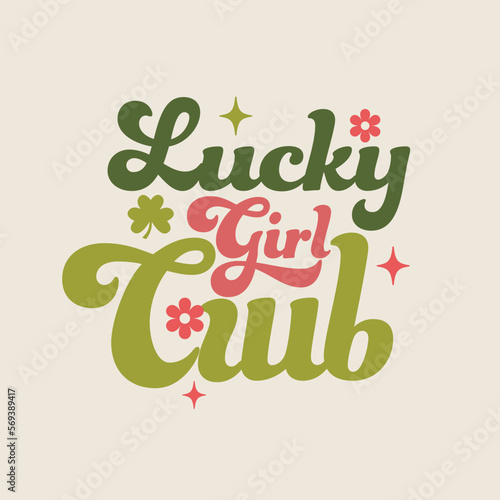 Lucky girl club vector design for shirt,Lettering text print for cricut,Retro design for shirt St Patrick's day.