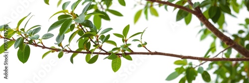 Lush green branch tree with multiple leaves isolated on white background, branch, background, foliage