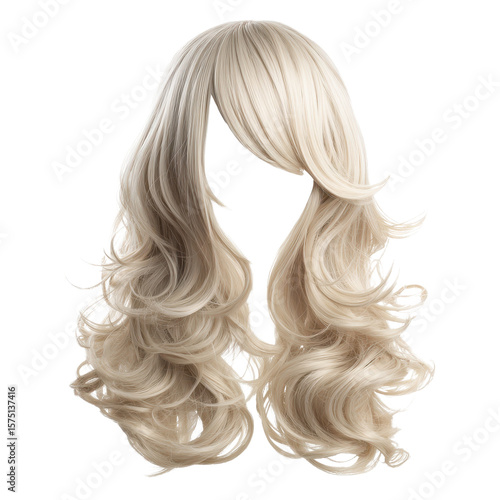Luxurious Long Wavy Blonde Wig Isolated on Transparent Background