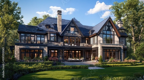 Luxury Tudor Style Mansion Architectural Rendering