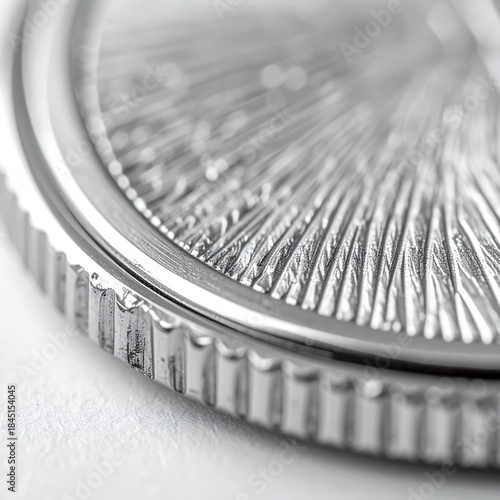 Macro Shot of a Silver Textured Medallion with Radial Patterns