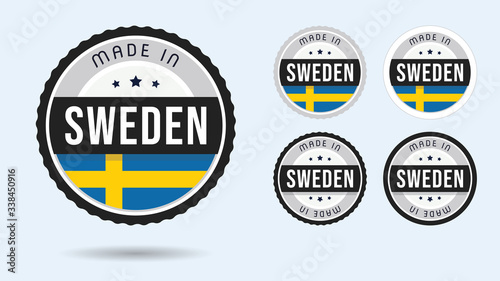 Made in Sweden. Set of labels and badges. Merchandise tag with Swedish flag.