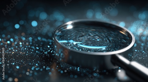 Magnifying glass examines glittering spheres