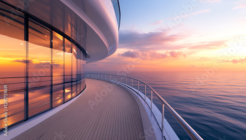 Majestic cruise ship gliding through a fiery sunset over calm ocean waters, creating a breathtaking seafaring spectacle