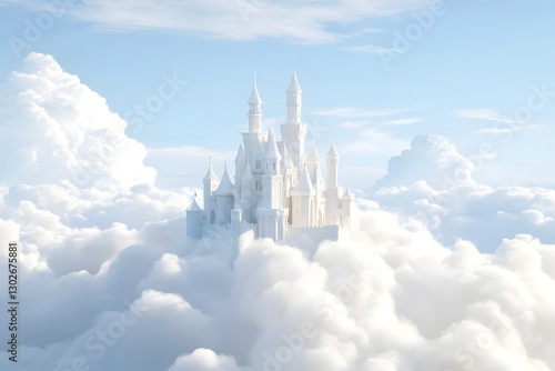 Majestic Fantasy Castle Floating Amidst Dramatic Sky and Clouds