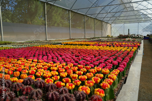 Many of various cactus plants on the pot at agriculture greenhouse garden