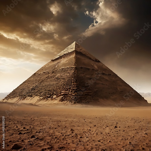 Martian pyramid surrounded by harsh Martian dust storms, only the apex peeking through the clouds