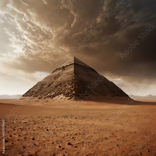 Martian pyramid surrounded by harsh Martian dust storms, only the apex peeking through the clouds