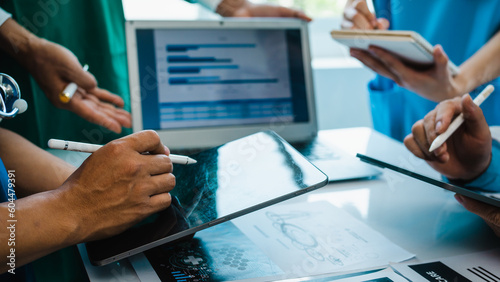 Meeting team of doctor and medical staff at hospital, Consultation about the treatment of heart disease, pneumonia, gastrointestinal and stomach diseases. and osteoporosis