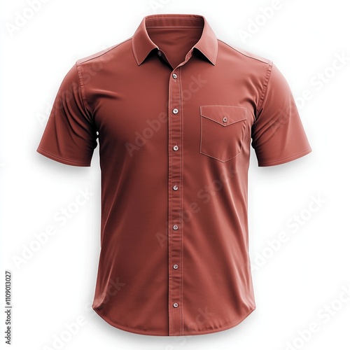 Men's short sleeved shirt on a white background.