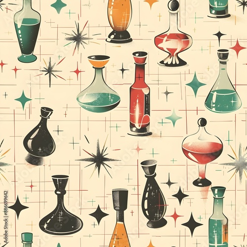 Mesmerizing Midcentury Modern Diner Scene with Enchanting Potion Bottles and Sleek Chrome Accents