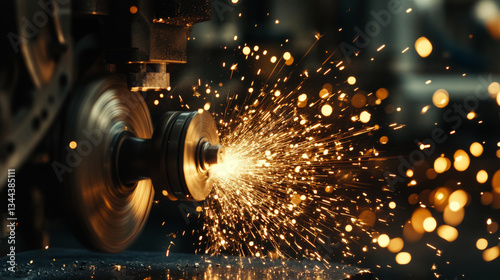 metal grinder is in action, emitting bright sparks and creating dynamic display of light. scene captures intensity and energy of metalworking, showcasing beauty of craftsmanship