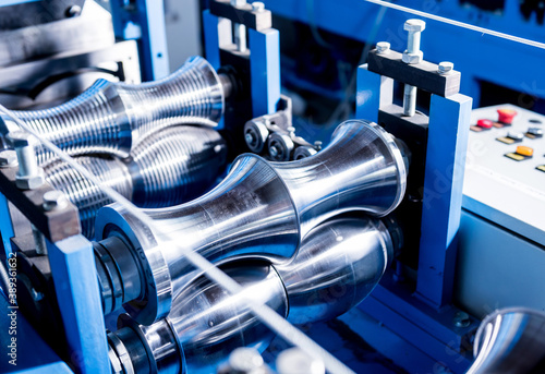 Metal sheet forming machine at the modern metalwork factory.