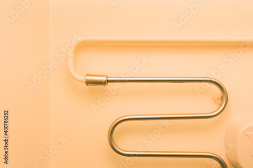 Metal warm towel dryer in the bathroom on the wall hot pipe at home