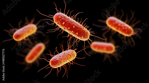 Microscopic view of rod shaped bacteria illustrating their morphology and flagella