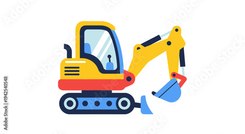 Mini Excavator Machine Digging Construction Site Vector Illustration