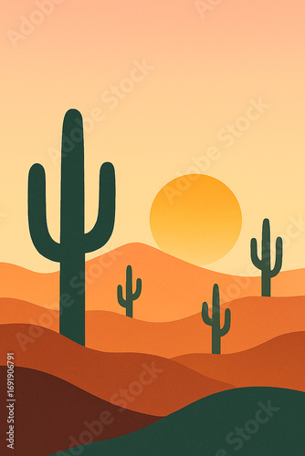 Minimal Desert Landscape with Cactus and Sunset Gradient
