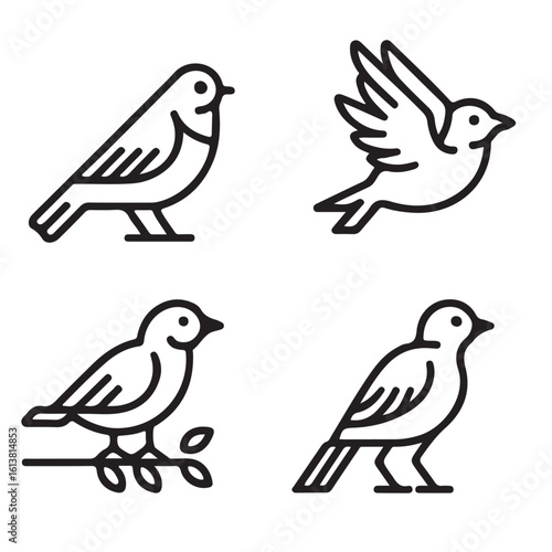 Minimalist Bird Line Icons Set – Elegant Outline Sparrow Vector Collection