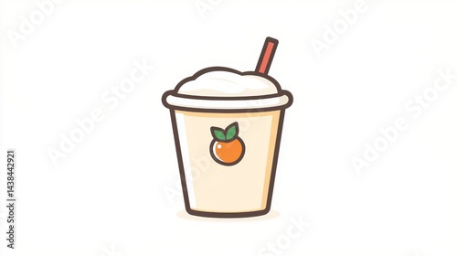 Minimalist Japanese Logo Design Featuring a Straw Cup With Whipped Cream and a Leaf Accent on a Simple White Background