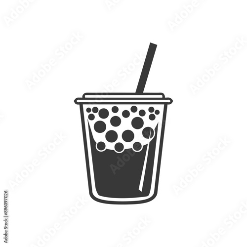 minimalist line art icon black and white cup of bubble tea logo symbol