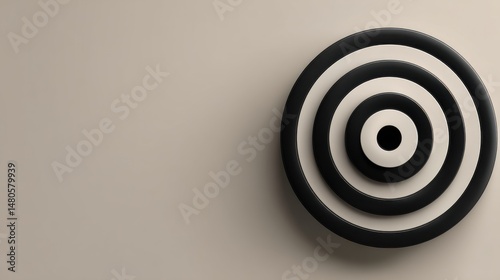 Minimalist Target Illustration in Black and White Rings on Beige Background for Business Goals and Marketing Concepts