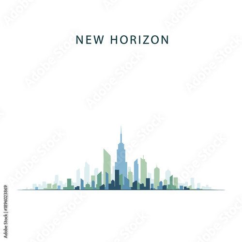 Modern city skyline silhouette, representing future development and urban growth, with stylized skyscrapers against a clean white background
