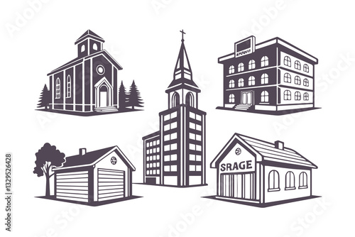 Modern Cityscape Silhouette Set Vector Clipart Collection