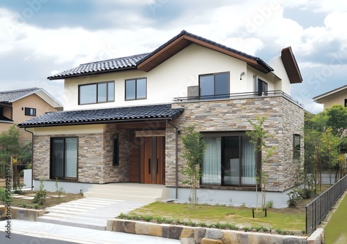Modern Japanese Style House with Stone Facade