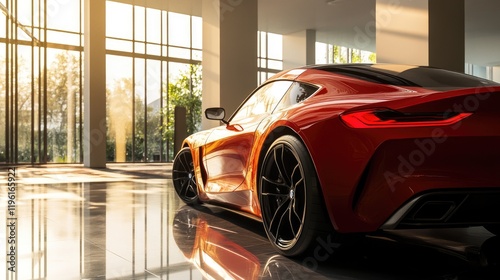 Modern luxury cars in a showroom with reflections and soft lighting.