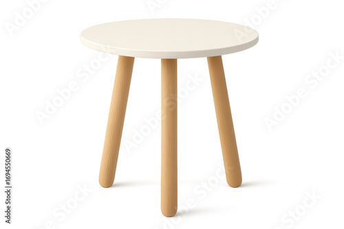 Modern round side table with wooden legs isolated on transparent background