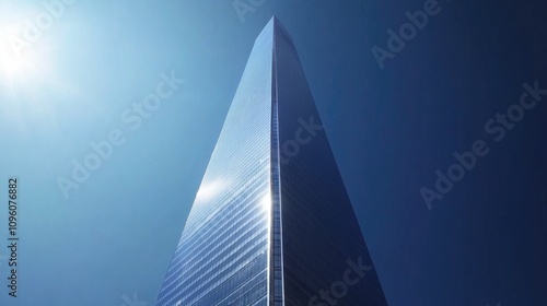 Modern Skyscraper with Sharp Clean Lines in Blue Sky