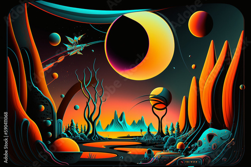 Modern world, futuristic universe, galaxy, planets, spaceships, robots, technology, metaverse, game, colorful background, abstract art, futuristic, decorative, realistic, modern art. Generative AI