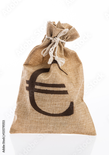 Money bag with euro sign on white background