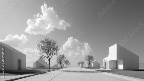 Monochromatic street scene minimalist architecture