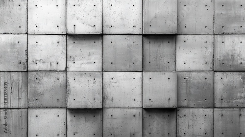 Monochrome textured concrete wall with square panels and subtle depth.