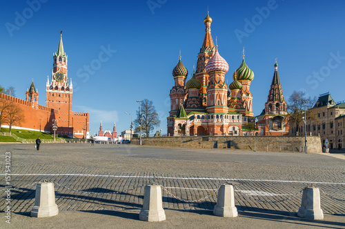 Morning view of Kremlin, Red Square and St. Basil's Cathedral , Moscow, Russia.