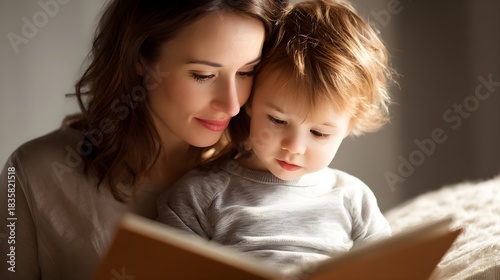 mother and kid reading together in cozy moment