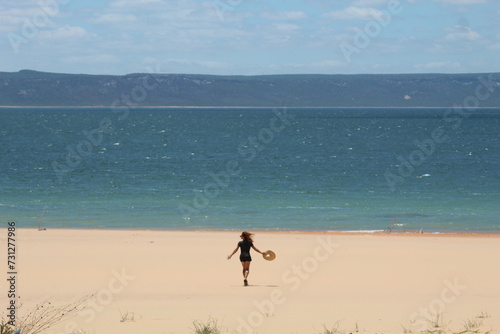 mulher caminhando na areia nas Dunas do Velho Chico, em casa Nova, Bahia, às margens do Rio São Francisco