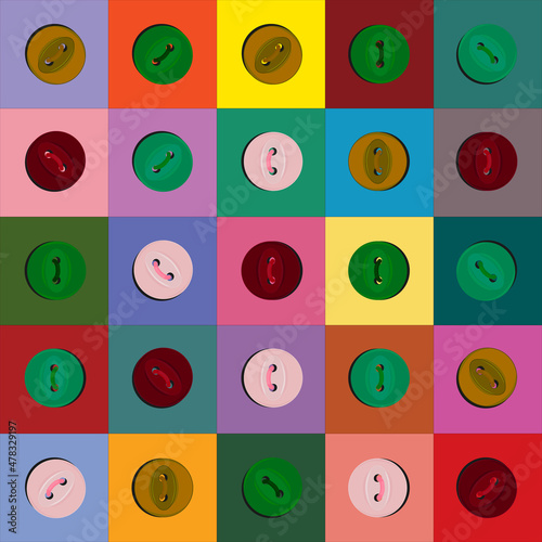 Multicolored squares with buttons. Patchwork for decoration