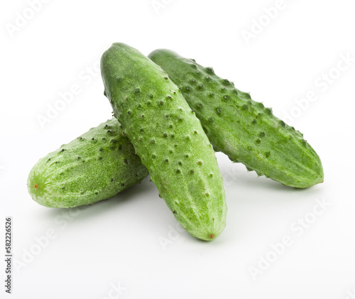 Natural food concept. Side view photo of ripe cucumbers isolated on white background