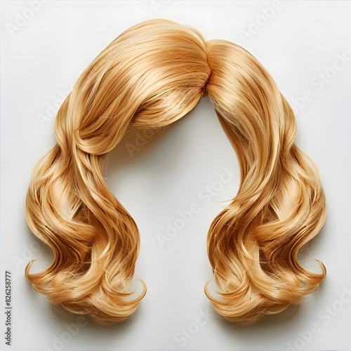 Natural looking long hair cut blonde wig isolated on white background