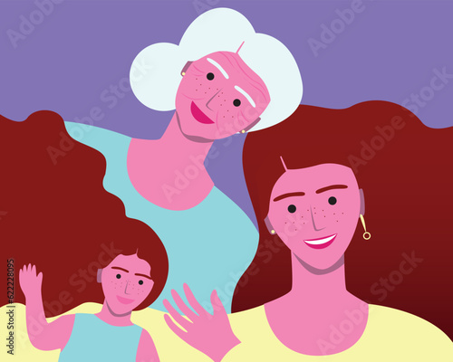 Natural woman as a family, grandmother, mother, daughter, vector stock illustration