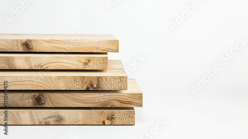 Natural wood planks stacked neatly, showcasing their unique grain patterns and textures, perfect for various construction and design projects