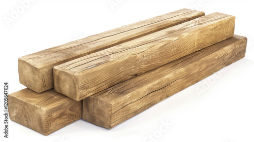 Natural wooden beams stacked together, showcasing their grain and texture. Ideal for construction or decorative projects