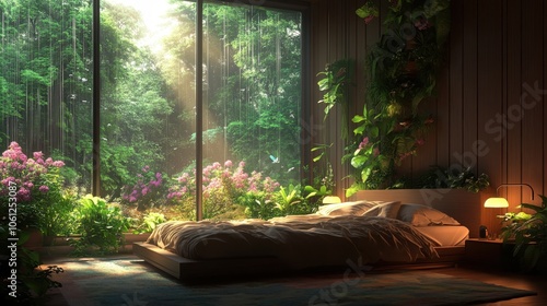 Nature-Inspired Bedroom with Rainforest View