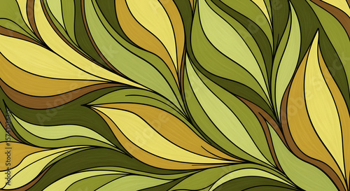 Nature's Abstract Flow A Serene Green and Yellow Leaf Pattern for Organic Designs