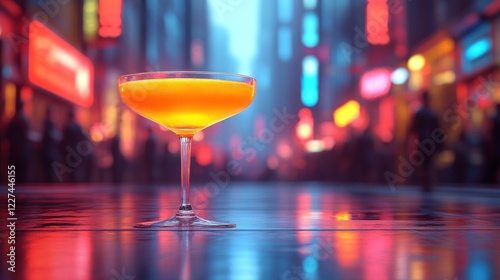 Neon city night, cocktail glass.