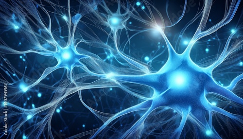 nerve cell blue color banner system neuron of brain with synapses medicine biology background generation ai
