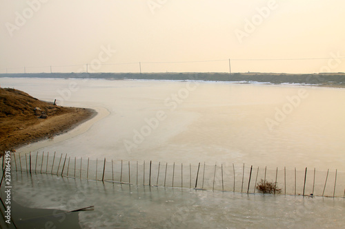 nets on the shores of an icy river