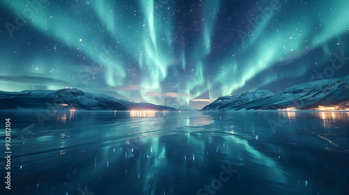 Night Sky with Aurora Borealis Over a Frozen Lake - Landscape Photography